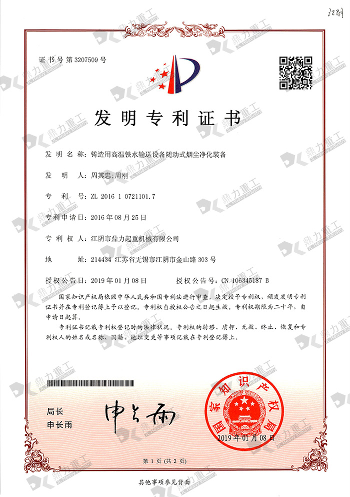 鼎力起重—鑄造用高溫鐵水輸送設備隨動式煙塵凈化裝備